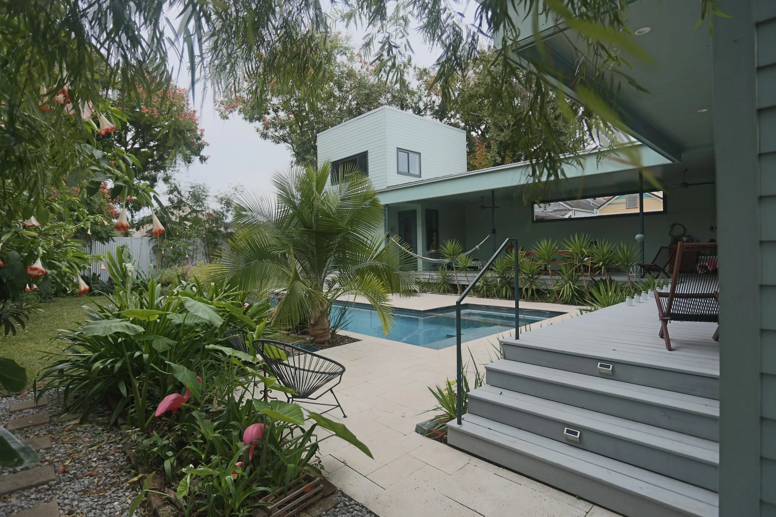 the clients, two professors employed by tulane’s art department purchased the property in hopes of developing not only a comfortable home to enjoy with their family, but a sanctuary to focus on their artistic endeavors, for their remaining careers and into retirement at the rear of the property the “L” shaped contemporary addition, almost imperceptible from the street, encloses a lush oasis hidden from the surrounding urban fabric. This addition contains a two story artist’s loft attached by the rear porch, a contemporary interpretation of the typical camelback, a form traditional to shotgun typologies. This addition creates a generous space for the family’s pool at the rear of the site. The interplay of these objects on site represents the family’s life style balancing life, work and play.